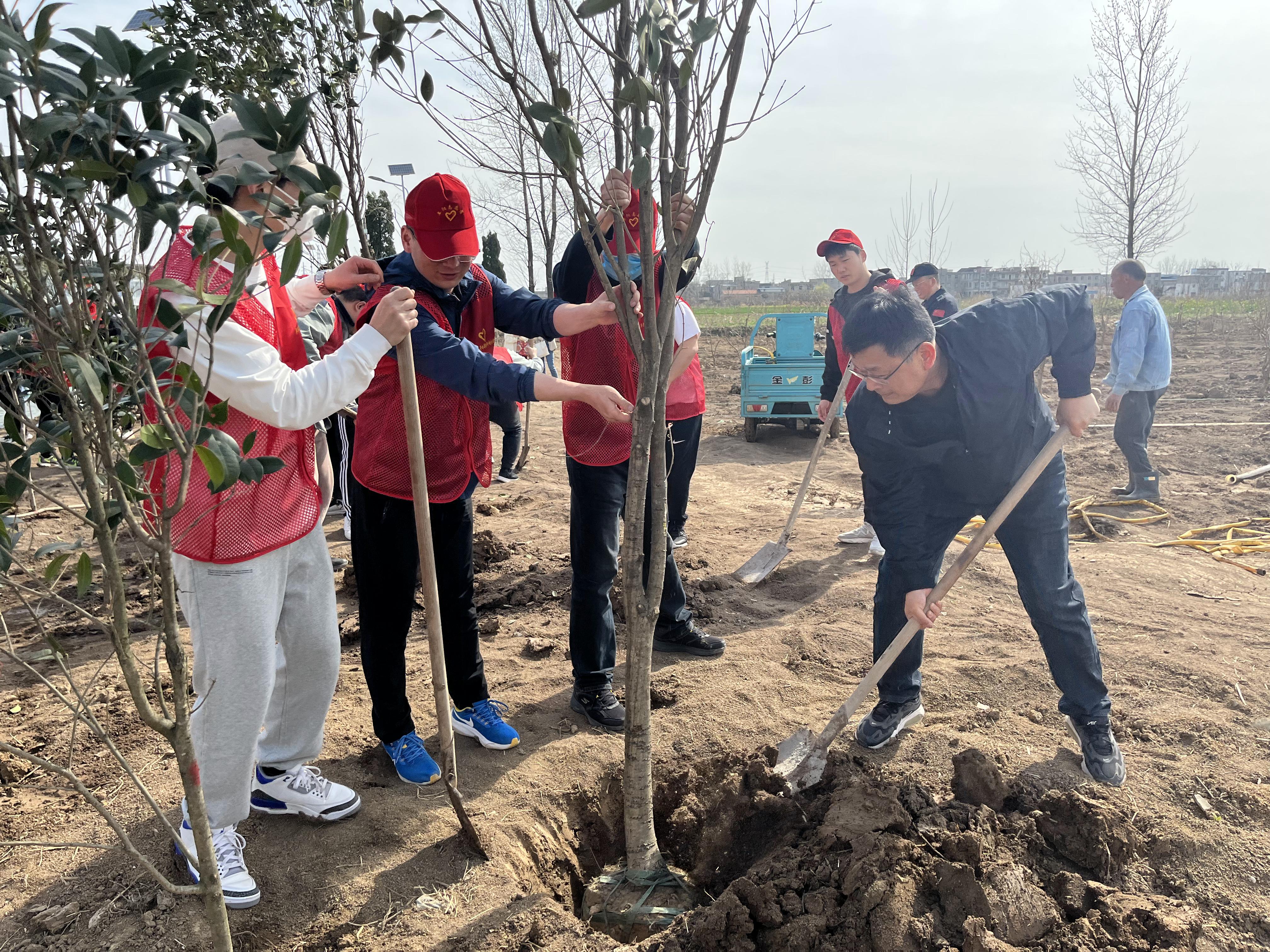 活動(dòng)當(dāng)天,公司一行人來(lái)到潁泉區(qū)中市街道街頭社區(qū)。在現(xiàn)場(chǎng)技術(shù)人員的指導(dǎo)下,全體人員干勁十足、精確分工,充分發(fā)揮團(tuán)隊(duì)協(xié)作精神,揮鍬鏟土、定點(diǎn)挖坑、放苗回填、固土澆水一氣呵成,以實(shí)際行動(dòng)為家鄉(xiāng)增添一抹新綠。
